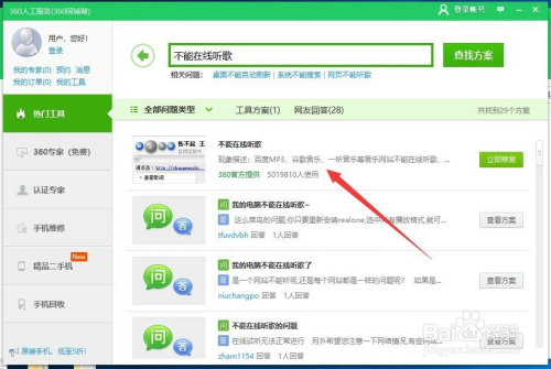 搜刮不克不及在线听歌,找到官方供给的解决方案,然后点击右侧的当即修复按钮