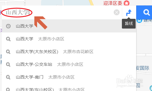下图就是百度地图官网,首先就是要在左上角的输入框里将本身的目标地输入,如图所示...