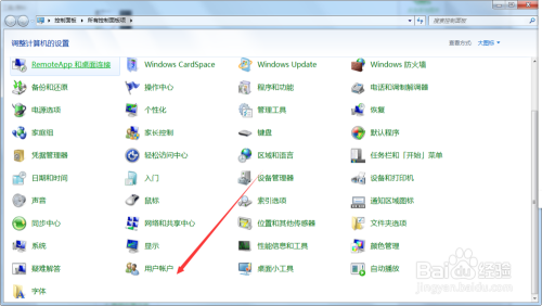 2.在节制面板列表中我们找到 “用户账户”图标并点击进入,如图所示;
