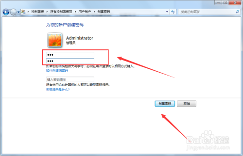 我们输入本身的密码,并再次确认后点击“建立密码”,密码即建立当作功,如图所示;