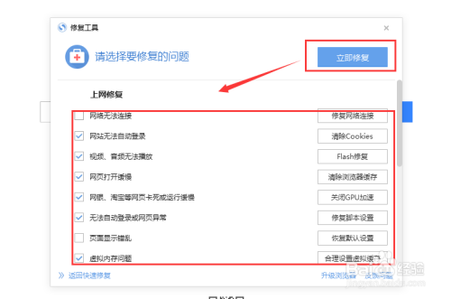 第三步:在更多选项中,电脑用户点击“浏览器修复”选项。打开浏览器自带的修复东西界面。