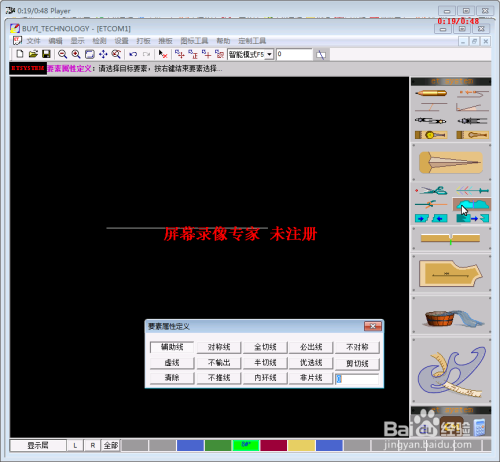 在ET打版制图中,经常会碰到要把原线改为此外线形,这就用到了要素属性设置功能。要素属性设置中又分为几种,此刻来介绍第一种:辅助线。