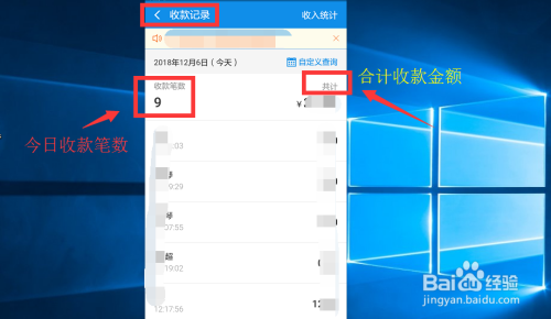 进入到收条目记实后,我们看见的是当天的收条目笔数、总金额和收条目明细,这个时辰,也就便利我们对账了。