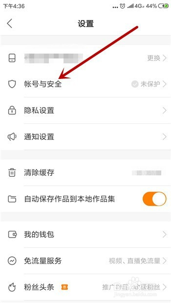 打开了设置后找到【账号与平安】,点击打开账号与平安界面。