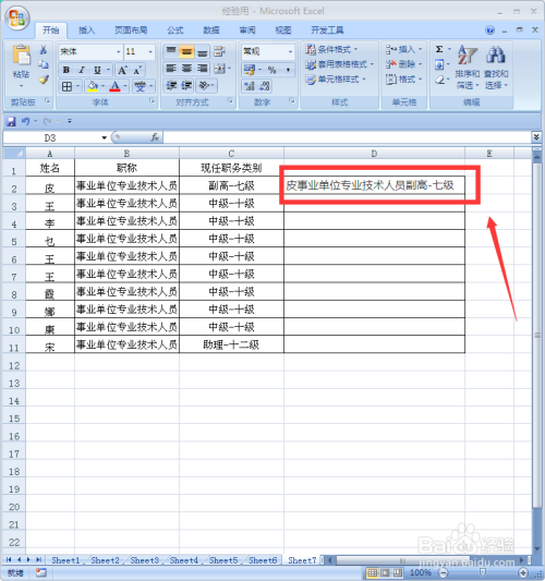 选中D2单位格,拖动填充柄,完当作所稀有据的归并