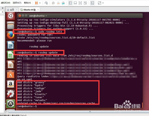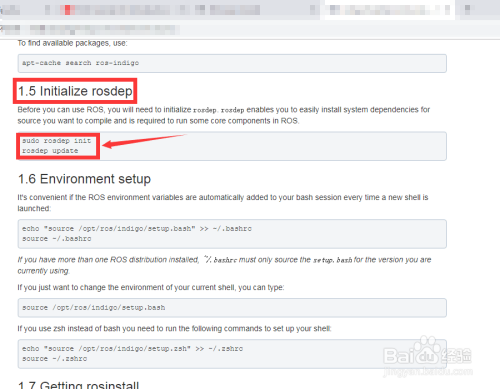 接下来,进行初始化。依次复制、粘贴和运行前述网站中1.5 Initialize rosdep末节的2条操作号令: