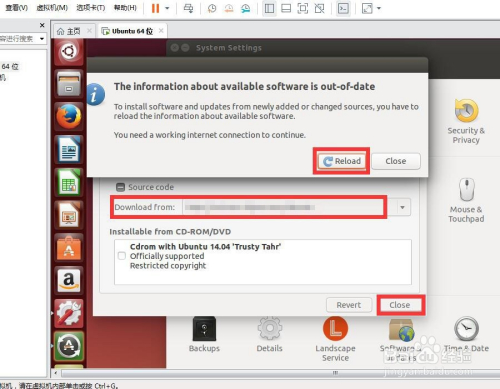 点击Close封闭Software & Updates,系统弹出The information about available software is out of date对话框,我们选择Reload期待其重载即可。重载完当作后,封闭System Settings。