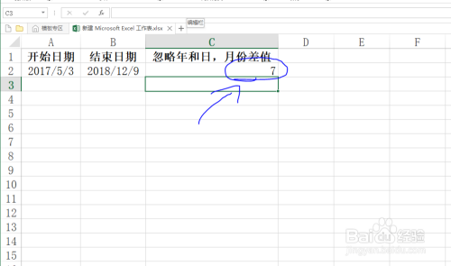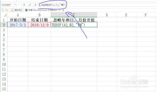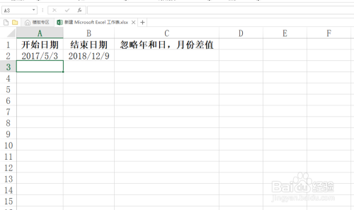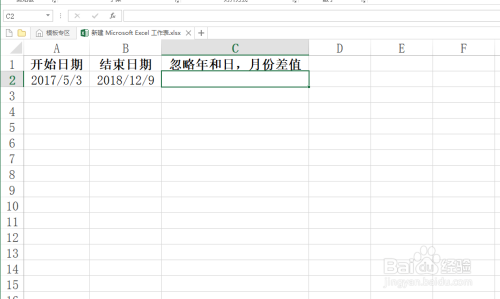 教程以新建的Excel工作表为例来介绍如何忽略年和日计较两个日期的月数差值。