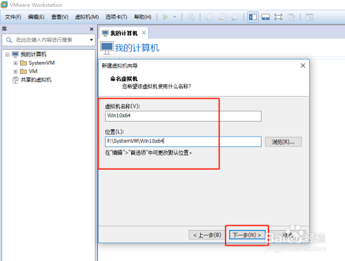 给虚拟机取一个名字,再选择一个虚拟机文件的存放位置,然后点击【下一步】按钮