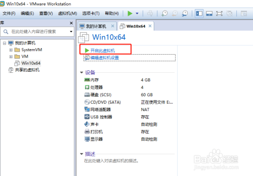 点击【开启此虚拟机】,即可起头安装win10