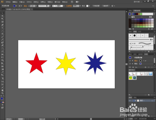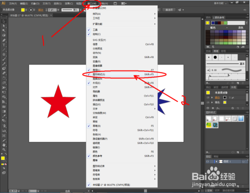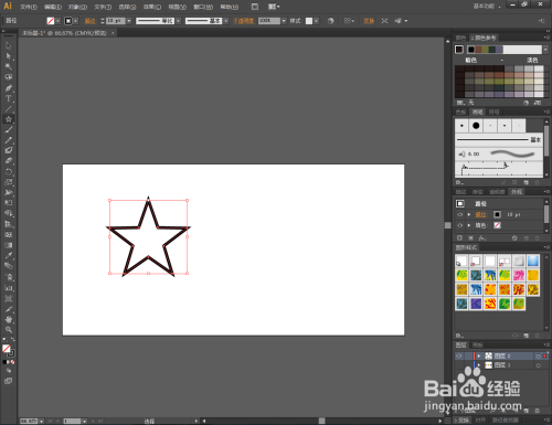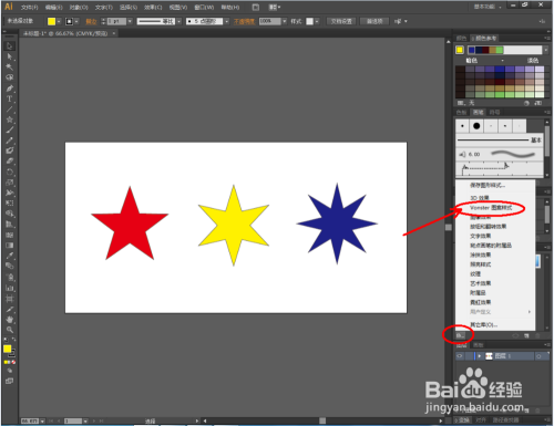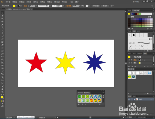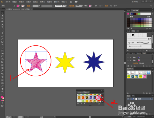 点击【窗口】-【图形样式】将图形样式设置栏调出,并放置于右边工作区中。点击【图形样式库菜单】,选择【Vonster图形样式】,弹出Vonster图形样式选择栏(如图所示);