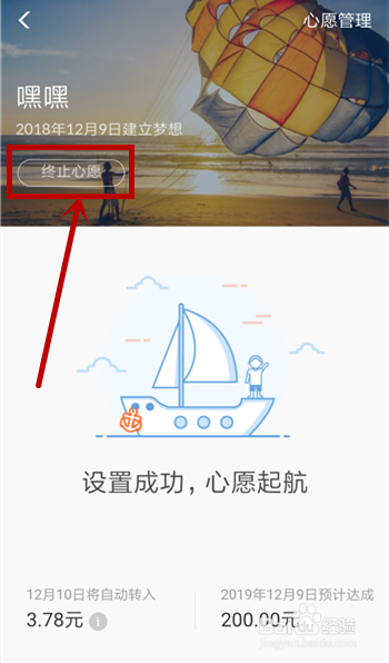 在弹出的付出密码界面输入密码,之后就会弹出许愿当作功的界面,点击左上角的【终止心愿】即可终止,可是扣条目当日不成终止,到这里存私房钱的教程就竣事了