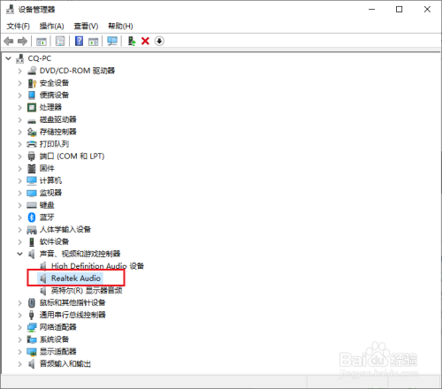 1. 此处以 音频驱动 为例,在设备办理器树状列内外找到音频驱动(此处为Realtek Audio)而且双击打开属性面板;