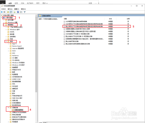 5.在右侧面板中选择“阻止利用与下列设备安装法式类相匹配的驱动法式安装设备”,并双击打开