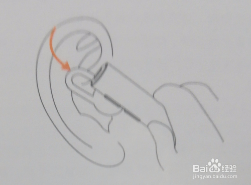 领会好耳机的布局今后,我们来看下如何佩带。佩带前我们需要选择适合本身耳朵大小的耳套,在耳机上安装好合适大小耳套后,将耳机塞中听朵,如图所示。轻轻摇摆脑壳,若是耳机不脱落,申明佩带合适。