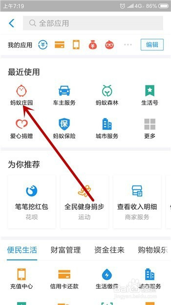 如许在所有应用中找到【教育公益】而且鄙人方找到【蚂蚁庄园】,点击打开。