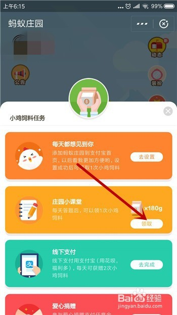 再次来到领饲料使命好后即可看到庄园小讲堂的【领取】,点击领取饲料。