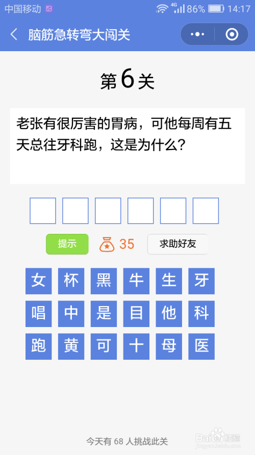 微信小游戏脑子急转弯年夜闯关的谜底是什么?请大师往下看,下面我将告诉大师脑子急转弯年夜闯关的谜底。