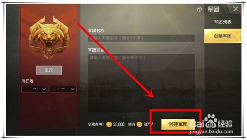 还可以切换到“建立军团”页面,本身建立一个军团,只是需要付出5万费用。