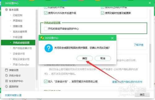 在开机启动项设置的选项中我们去失落第一项开机时主动开启平安防护中间