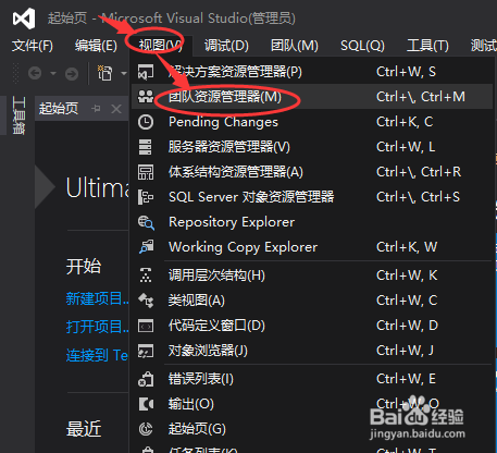打开Visual Studio 2012,依次选择菜单栏中的“视图”->“团队资本办理器”,如下图所示: