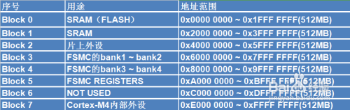 接下来我们来别离看一下这8块区域的内容,这些区域划分为从Block0-Bolck7,先来看一下Block0(容量512MB),这一块本家儿要用于设计片内的FLASH,这个块是需要我们着重进修的,如下图: