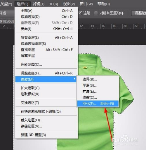 选区做出交往往不克不及一次性做到位,需要对选区的边缘进行细微的调整和成仙,我这个选区做的可以给99分,所以我稍微成仙一下就可以了。如图所示,调出成仙号令,快捷键shift+F6