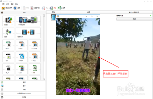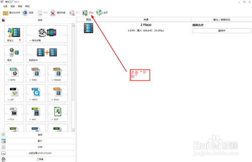 如下图所示,点击界面上方的“起头”按钮,进行视频归并,生当作归并视频。