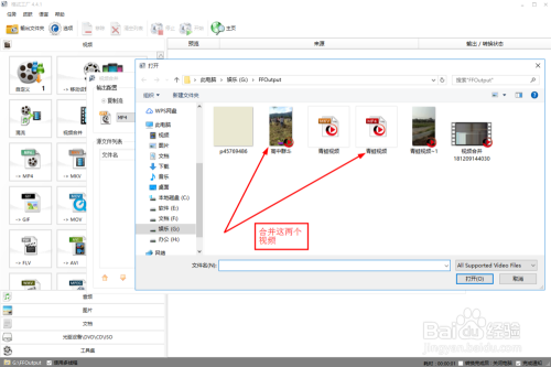 如下图所示,这时从电脑中找到需要归并的视频。这里将“高中群斗”和“青蛙视频”这两个视频为例子,进行归并。