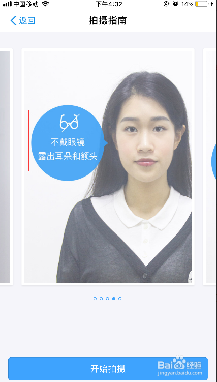 在【拍摄指南】页,当真查看五项拍摄注重事项之后,点击【起头拍摄】。
