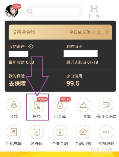 首先你要找到白条的金融端手机APP,进入到APP后,在客服端“我”的页面上我们可以找到“白条”。