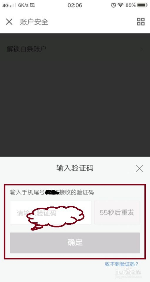 点击“解锁白条账户”,进入到账户解锁的验证环节,一般只需要我们输入手机验证码,完当作验证即可。