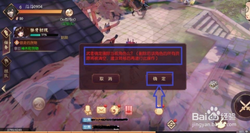 点击“删除脚色”,就会弹出警告窗口,删除游戏脚色后,脚色的所有资本将被清空,知晓今后点击确定。