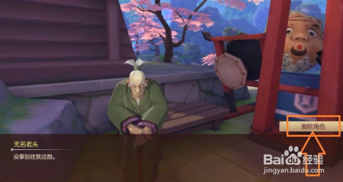 当我们移动到无名白叟处时,就会弹出与无名白叟的对话窗口,在窗口页面中我们可以看到“删除脚色”。