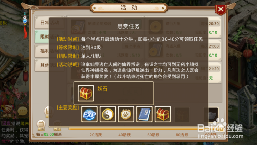 赏格使命为每个半点领取,就是每个小时的30领取,到40分就截止领取了。