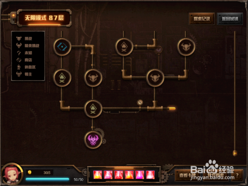 无限模式进入后,进入一张地图,每张地图有8层,地图的最基层为boss,打败boss进入下一张地图。