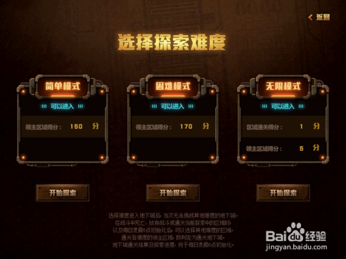 摸索难度有三种模式可以选择