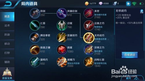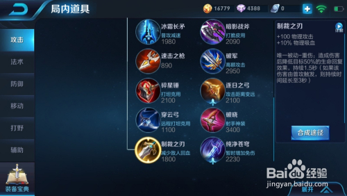 第四个出泣血或者制裁,按照对面的环境,对面有回血型英雄就出制裁,回血型英雄必出制裁排行:奶妈、陈咬金、典韦、貂蝉,对面没有很强的回血英雄可以先出一把小回血刀(吸血之镰)