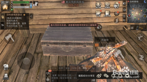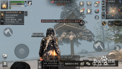 暴风雪提醒要来时,赶紧找到图中绿色小房子标识表记标帜,去遁藏风雪。