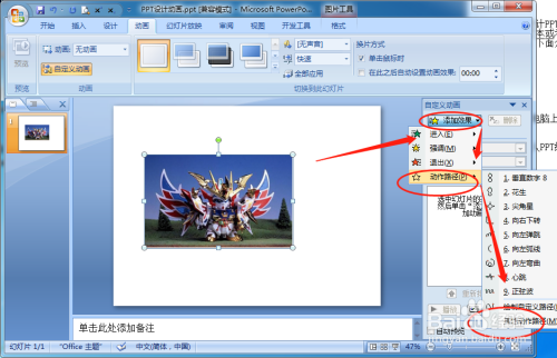 我们在设计PPT使,可以恰当插入一些动画结果。好比可以设计在放映时,将文本或者图片按飘形移动。如许可以使整个PPT动画看起来更滑丰硕。下面介绍如何设置图片或者文本按飘形平移: