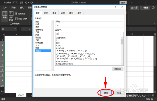 - 我们需要哪些数值单位格前面添加+号,就设置哪些数值单位格的格局。