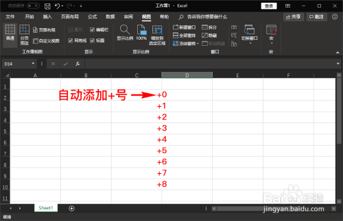 返回到excel中,我们就可以发现之前选中的数据都主动在前面添加了一个“+”号,并且点击其他单位格时,这个“+”号也不会主动消逝。