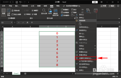 选中单位格之后,我们在上面单击鼠标右键,在右键菜单中选择并点击“设置单位格格局”菜单进入。