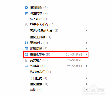 然后,在电脑上找到我们的输入法,在输入法的选项里找到“符号和脸色”菜单选项,点击进入。