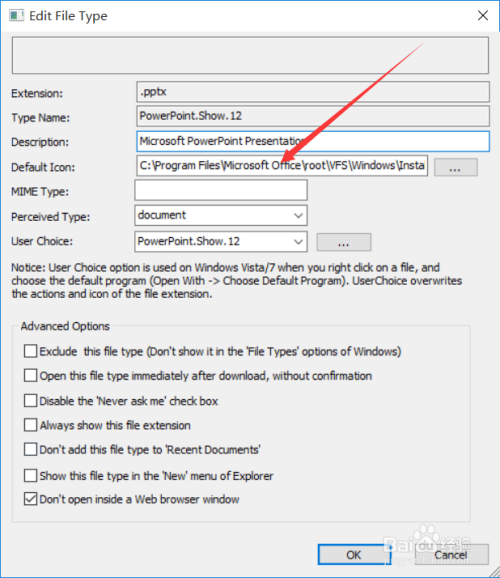 将Default Icon值点窜为office的pptx文件的图标文件位置