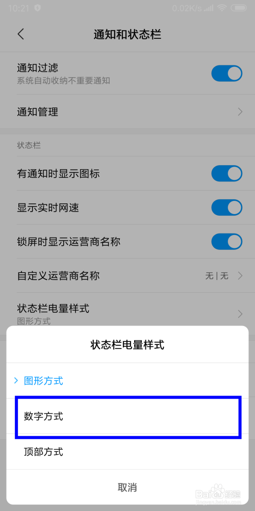 之后,我们可以看到手机右上角已经显示出电池的百分比模式,如许设置就完当作了。
