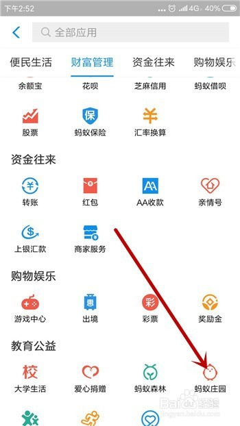 点击后会打开应用界面,找到里面的【蚂蚁庄园】应用并点击打开。