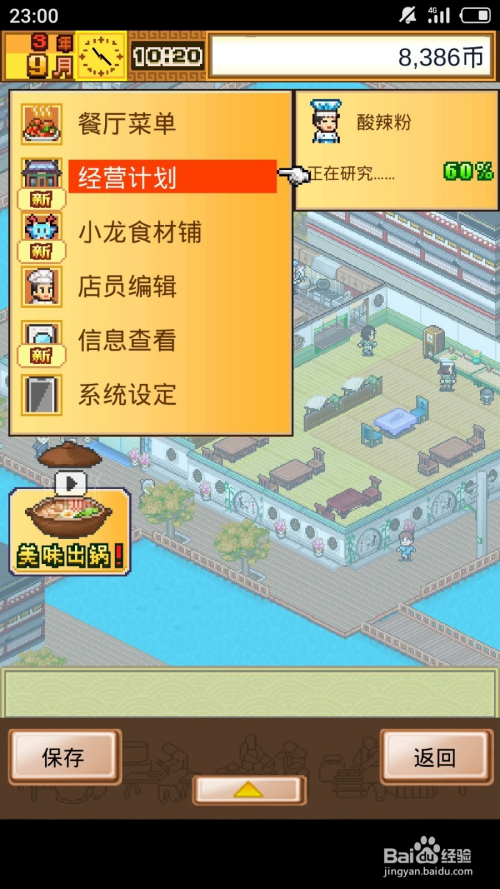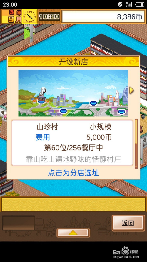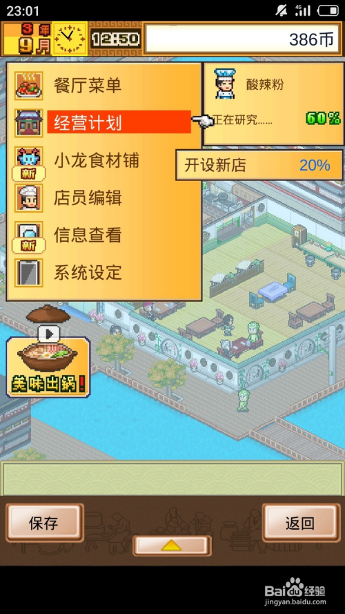 经营餐厅时获得开分店提醒就打开【菜单】。