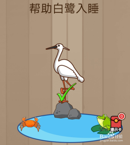 脑力吃鸡年夜乱斗60关谜底:这是个常识题,鸟类睡觉的时辰都是单腿站立,为了让白鹭睡觉,就点击下白鹭的腿,如许就单腿站立了。