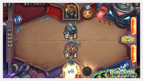 接着,将手中0费的引力翻转卡片打出,将对面的5/2藏宝巨龙酿成2/5。